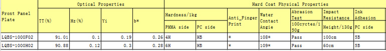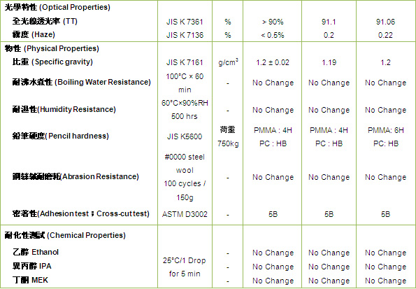 Pencil Hardness:PMMA side / PC side (Weight Load 1kg)